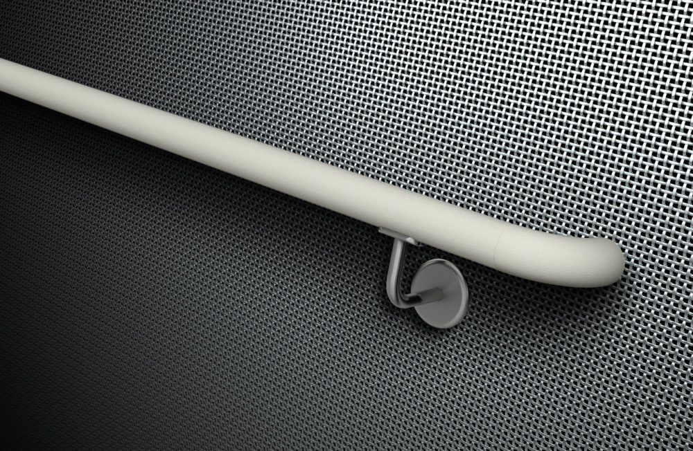 The HR-6CN is the latest addition to our handrail range, offering pedestrian support in an environmentally friendly profile. The 40mm Ø handrail features Acrovyn® 4000, PVC-Free cover over aluminium retainer and is mounted on stainless steel brackets.