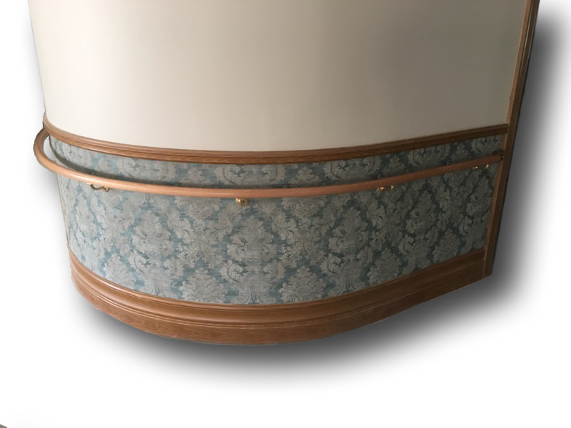 The shock absorbing Acrovyn crash rail of model P-OWAN protects not only the wall behind it, but also the oval wood handrail above it. Model P-RWAN features a round wood handrail and model P-OMAN features an oval metal handrail.